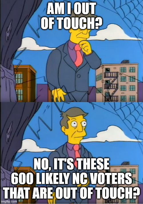 Sometimes though, the proverbial Principal Skinner is correct, and it IS everyone else that’s wrong. There were actually a few places in the latest CJ Poll where I had this experience — with apologies to these particular 600 likely North Carolina voters.