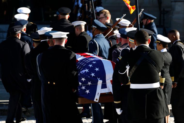 WASHINGTON, DC – JANUARY 09: U.S. Military Body Bearers carry the flag-draped casket bearing the remains of former U.S. President Jimmy Carter into the Washington National Cathedral for his state funeral on January 09, 2025 in Washington, DC. President Joe Biden declared today a national day of mourning for Carter, the 39th President of the United States, who died at the age of 100 on December 29, 2024 at his home in Plains, Georgia. (Photo by Chip Somodevilla/Getty Images)