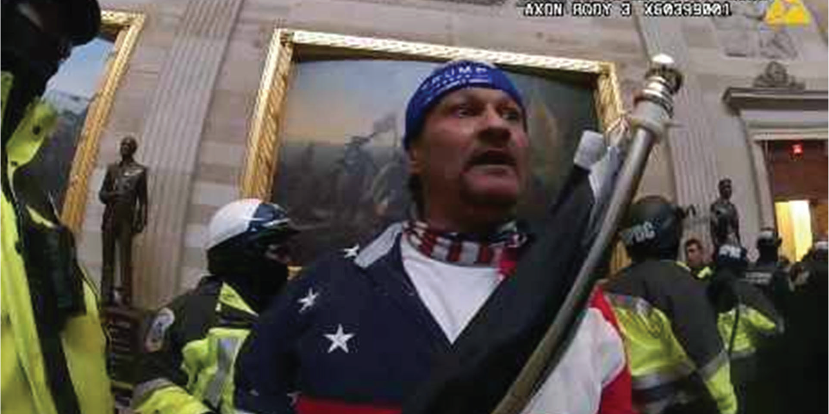 Officials say Johnny Harris, 45, admitted to entering the Capitol building with a megaphone and flag during a discussion with federal agents on Jan. 19. He also stated that he recorded videos of his actions with two devices, a GoPro and his cell phone. A special agent interviewed two witnesses who identified Harris.